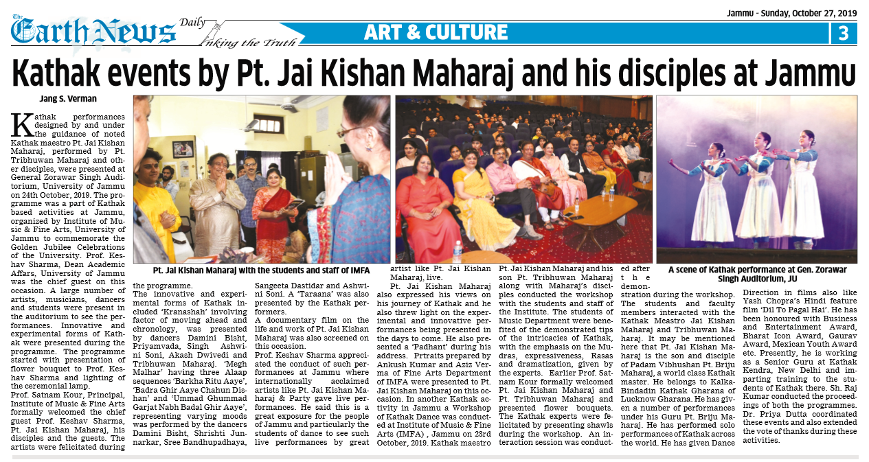 Earth News, Jammu- 27.10.2019 (Page- 3: Art & Culture)
